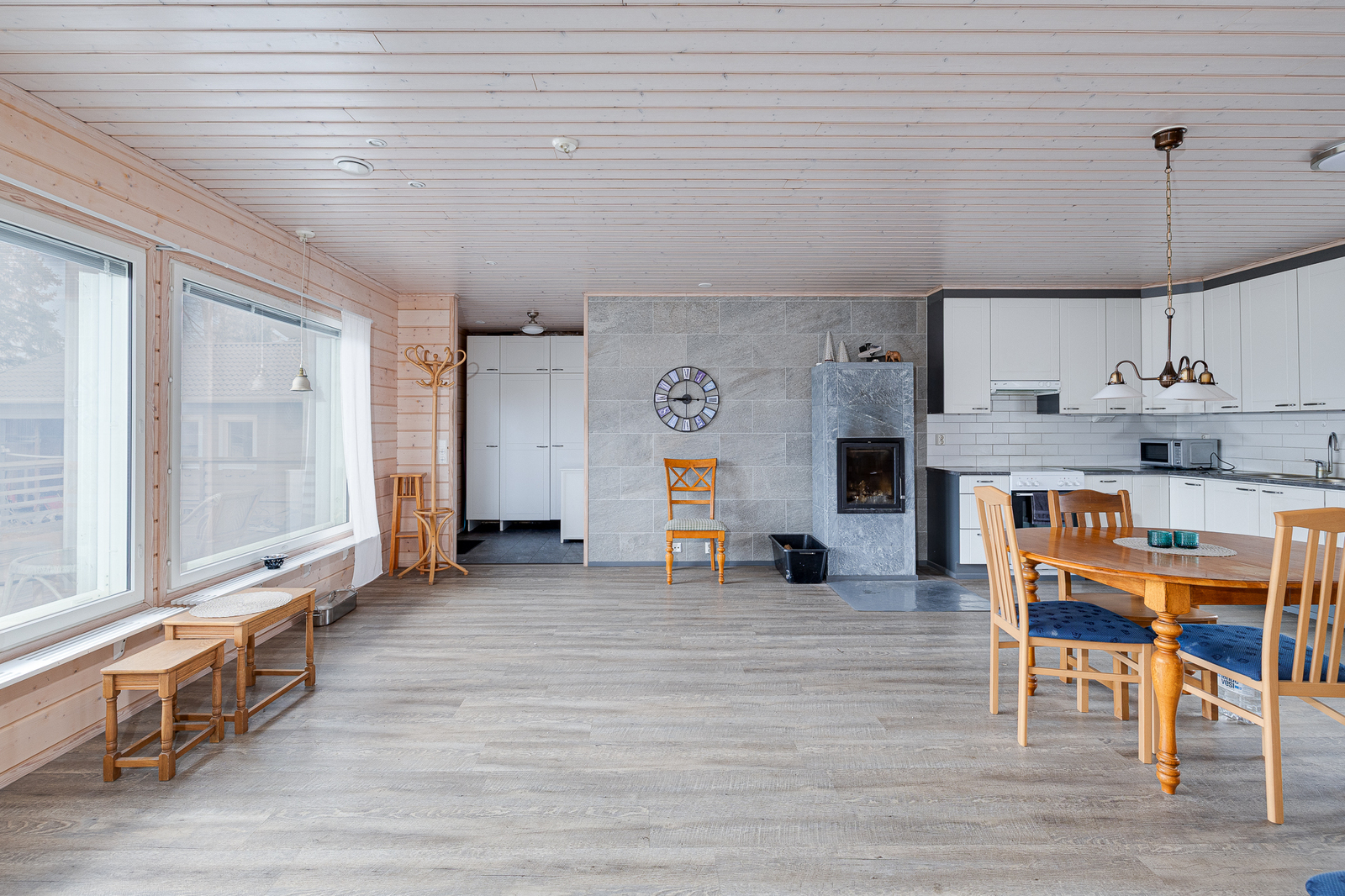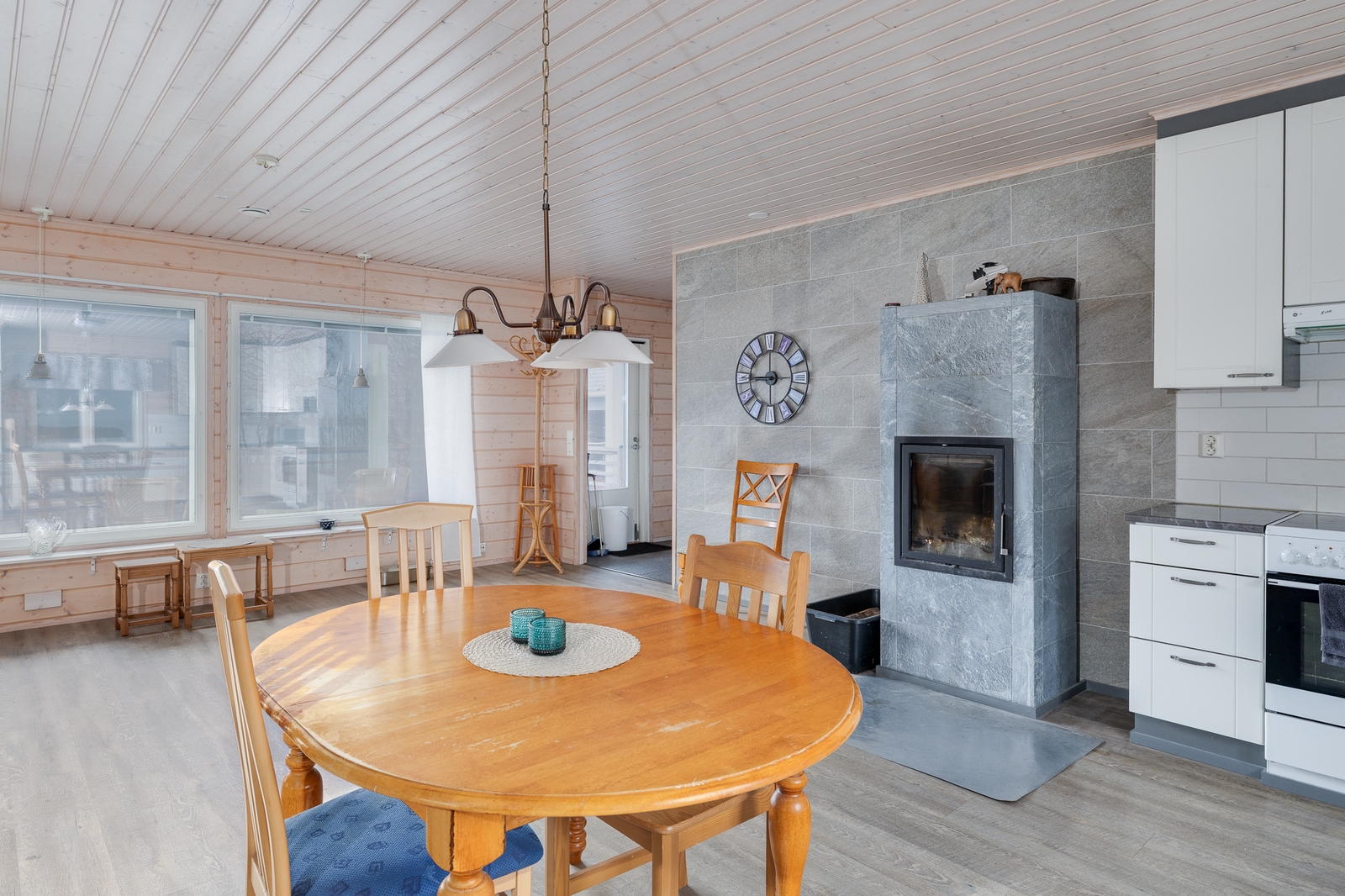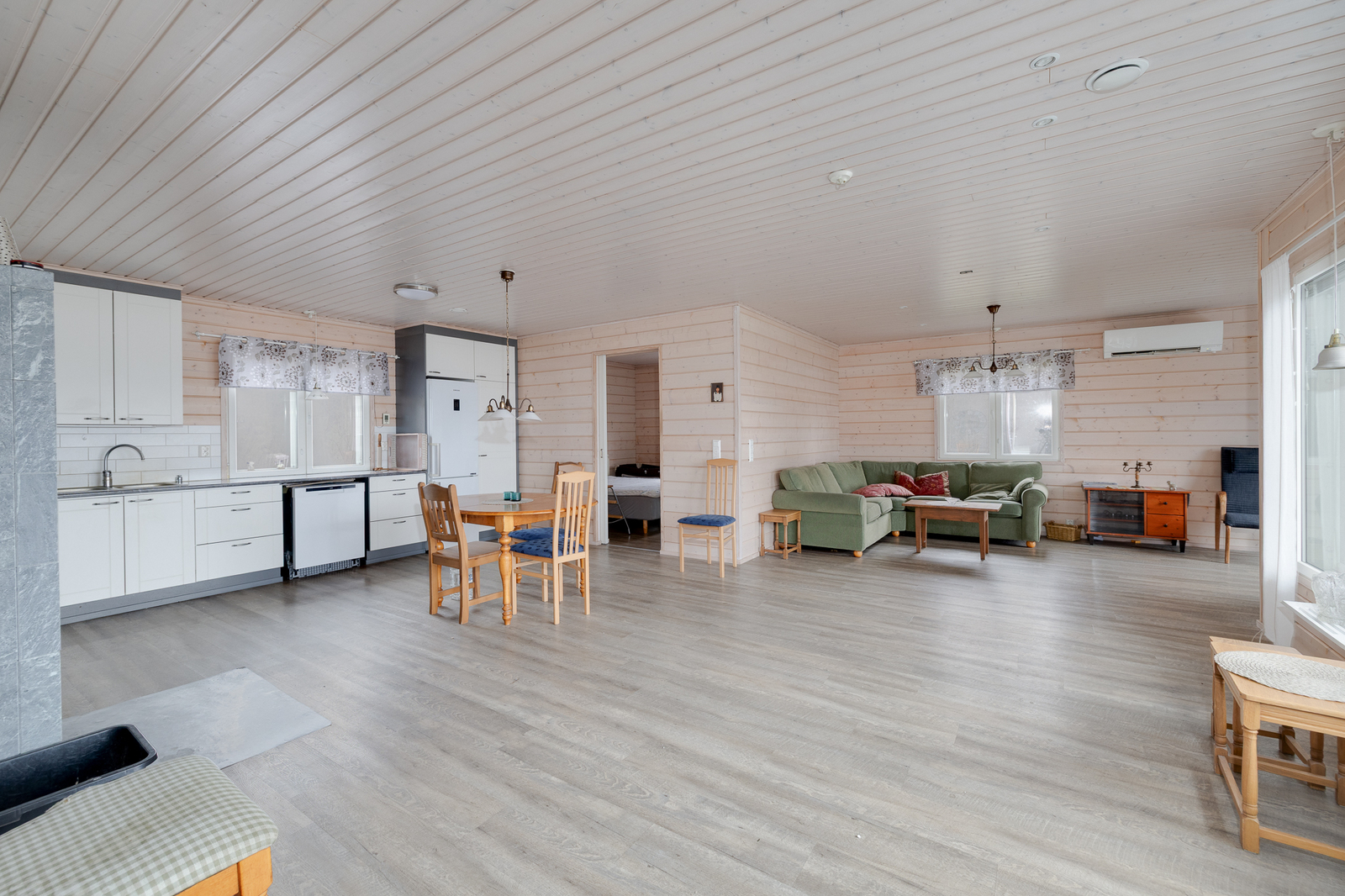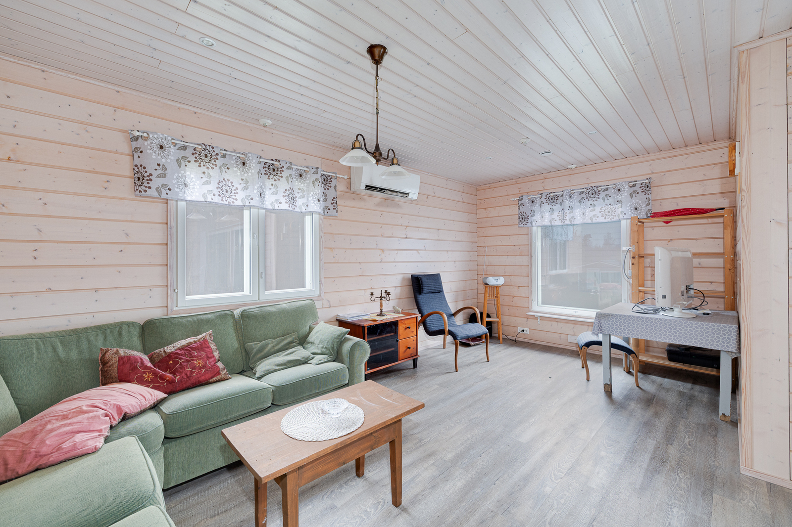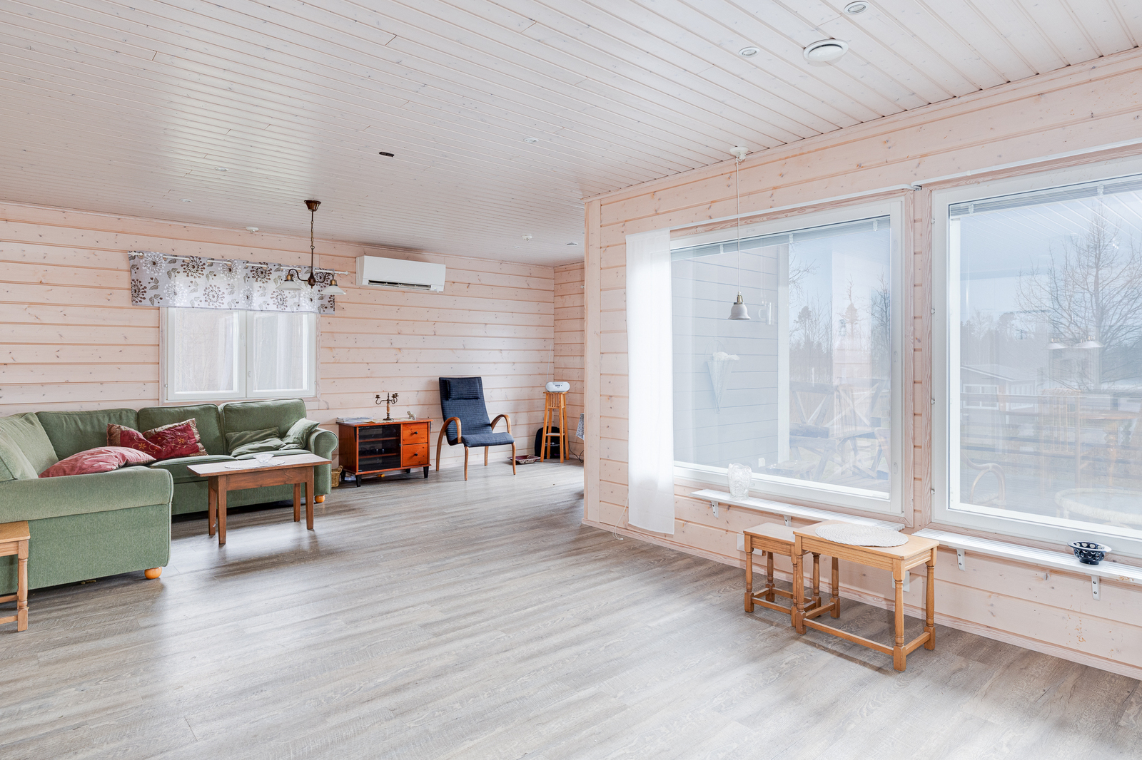 | Olohuone: | Varaava takka Olohuoneesta voisi erottaa yhden makuuhuoneen lisää Lattia: laminaatti |