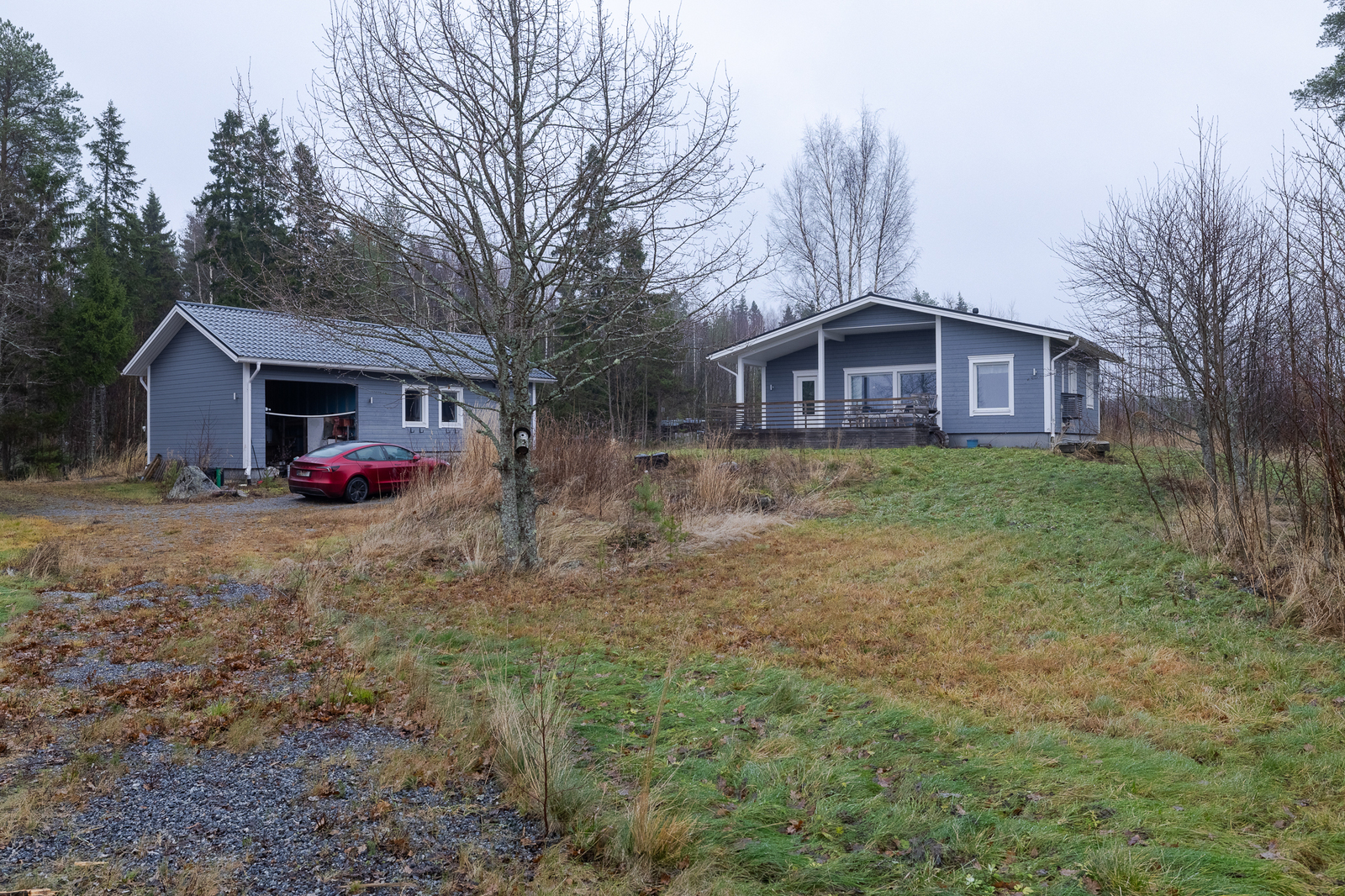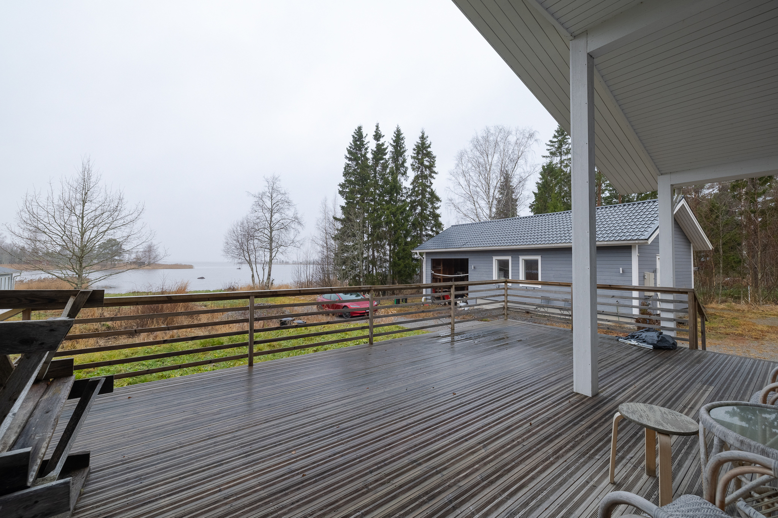 Uudehko vapaa-ajanasunto täysillä mukavuuksilla yli 3 hehtaarin tontilla Korsnäsin Edviksjönissä Tuulilta suojassa oleva länsiranta, mutta kuitenkin jopa osittainen avomerinäkymä. V. 2013 rakennettu 90 m² huvila on nykyisellään 2h+k+s, mutta helposti tänne tekee yhden makuuhuoneen lisää, koska avoin olohuone- ja keittiötila on todella hulppean kokoinen. Huvila on sähkölämmitteinen, mutta lämmityskulut ovat olleet maltilliset, kun lämmitykseen on käytetty ilmalämpöpumppua ja varaavaa vuolukivitakkaa. Polttopuutahan tällä tontilla riittää. Vesi tulee mökkiin omasta kaivosta, mutta koska täällä ei ole muutamaan vuoteen asuttu, on kaivon kunnostus todennäköisesti edessä. Mökissä on puulämmitteinen sauna sekä moderni kylpyhuone ja tietenkin vesivessa. Pihassa on iso talousrakennus, jossa on yksi iso, lämmin huone, jota voi käyttää kukin tarpeidensa mukaan sekä tilava autokatos. Rannassa on reilun kokoinen huvimaja, jossa saa nauttia auringonlaskuista tuulensuojassa. ******************************** Relativt ny fritidsbostad med fulla bekvämligheter på en över 3 hektar stor tomt vid Edviksjön, Korsnäs. Västerläge med skyddad strand från vindarna, men ändå med delvis utsikt över öppet hav. Villan på 90 m², byggd år 2013, har i nuläget planlösningen 2 r + k + b, men det är enkelt att inreda ytterligare ett sovrum tack vare det mycket rymliga öppna vardagsrums- och köksutrymmet. Villan värms med el, men uppvärmningskostnaderna har varit måttliga eftersom man använt både luftvärmepump och en värmelagrande täljstensspis. Ved finns det gott om på den egna tomten. Vatten tas från egen brunn, men eftersom stugan inte varit bebodd under de senaste åren är en renovering av brunnen sannolikt att vänta. Stugan har en vedeldad bastu samt ett modernt badrum och naturligtvis vattentoalett. På gården finns en stor ekonomibyggnad med ett rymligt, uppvärmt rum som kan användas enligt behov samt ett generöst biltak. Vid stranden finns en rejält tilltagen paviljong där man kan njuta av solnedgångarna i skydd för vinden.
