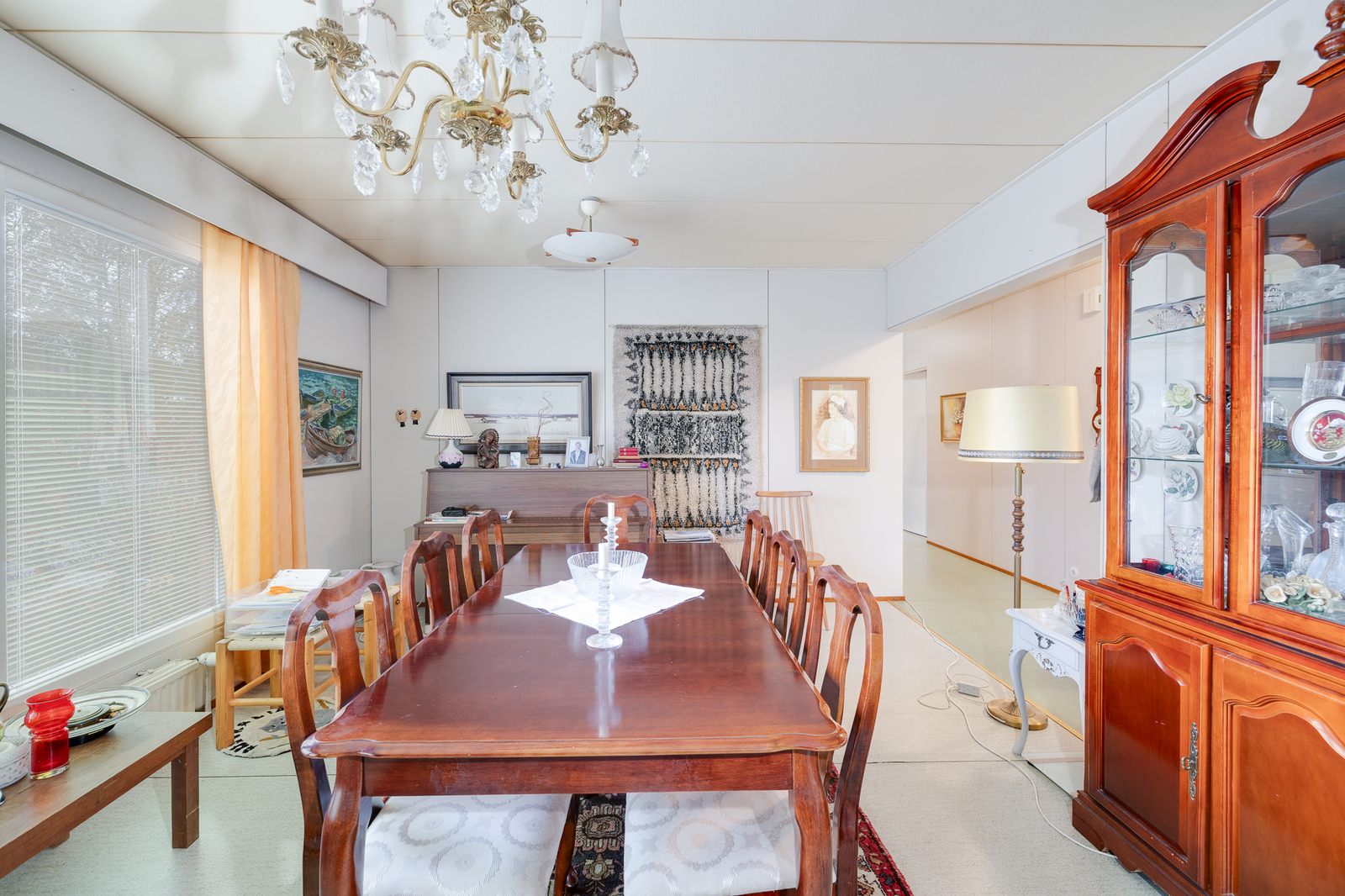 Hyvällä sijainnilla viihtyisä ja yksitasoinen pystyhirsitalo – lähellä Huutoniemen koulua ja palveluita! Tervetuloa tutustumaan tähän lämminhenkiseen, pystyhirsirunkoiseen kotiin, joka sijaitsee kätevästi aivan Huutoniemen koulun ja muiden palvelujen kupeessa. Talon pohjaratkaisu on toimiva ja tarjoaa monipuolisia mahdollisuuksia muokata tiloja omaan elämäntilanteeseen sopiviksi. Asuinpinta-alaa on noin 118 m² (vanhan mittaustavan mukaan) ja sen lisäksi löytyy erillinen saunaosasto. Kolmen makuuhuoneen lisäksi on läpikulkuhuone, joka soveltuu erinomaisesti esimerkiksi työ- tai vierashuoneeksi. Talon yhteydessä on lämmin ja tilava autotalli sekä reilusti varasto- ja säilytystilaa. Käyttövesiputket on uusittu, ja viemäröinti on toteutettu kestävästi muoviputkilla – huolettomampaa asumista vuosiksi eteenpäin. Kuntokartoitus tehty 10/2025. Tämä koti tarjoaa erinomaisen mahdollisuuden niin perheelle kuin pariskunnalle – tule ja näe itse paikan päällä! *********************************** Enplans egnahemshus med stående stockstomme och utmärkt läge – nära Roparnäs skola och service Välkommen att bekanta dig med detta trivsamma och välhållna enplanshus av stående stockar, beläget behändigt invid Roparnäs skola och andra bekvämligheter. Planlösningen är säkert fungerande och erbjuder flera fina möjligheter till anpassning efter dina behov. Boytan är cirka 118 m² (enligt tidigare mätstandard), exklusive bastuavdelningen. Huset har tre sovrum samt ett genomgångsrum som passar perfekt som arbetsrum eller gästrum. Här finns även ett uppvärmt och rymligt garage samt gott om förrådsutrymmen. Vattenrören har bytts ut och avloppsrören är hållbara plaströr – en stor fördel för framtida bekymmersfritt boende. Konditionsgranskningen utfördes i oktober 2025. Ett hem med mycket potential – perfekt för familjen eller paret som söker ett lugnt men centralt läge. Välkommen att uppleva möjligheterna på plats!