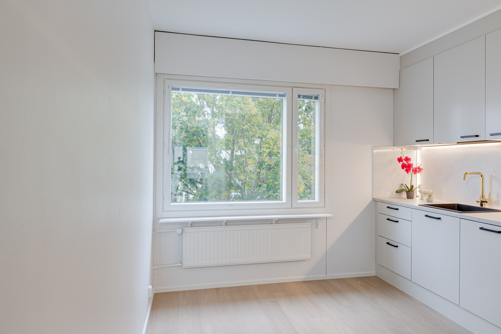 Ihana tunne – saada muuttaa vastaremontoituun kotiin! Valoisa ja neliöitään avaramman tuntuinen kolmio hissitalossa "uimahallin mäessä", lähellä merenrannan kauniita ulkoilureittejä. Asunnon täydellinen remontti on juuri valmistunut – kaikki pinnat, keittiö ja kylpyhuone ovat upouudet. Tyylikkäässä, vaaleasävyisessä keittiössä on modernit, integroidut kodinkoneet: korotettu uuni ja mikro, kalusteovien taakse kätkeytyvä tiskikone sekä jääkaappi/pakastin – kokonaisuus on viimeistelty ja harmoninen. Hillitty, vaalea tyyli jatkuu kylpyhuoneessa, jota elävöittävät kauniit puunsävyt ja mustat yksityiskohdat. Tilava olohuone tarjoaa monia mahdollisuuksia – sinne mahtuu helposti suuri ruokailuryhmä tai viihtyisä työpiste. Olohuoneesta on kulku lasitetulle eteläparvekkeelle, joka kutsuu nauttimaan auringosta aikaisesta keväästä pitkälle syksyyn. Taloyhtiö on hyvin hoidettu ja isoimmat remontit, kuten putkiremontti sekä ikkunoiden ja parvekeovien uusiminen, on jo tehty. Myös hoitovastike on kohtuullinen, vain 4 €/m² (260 €/kk), ja oma tontti pitää kulut kurissa. ************************************* Vilken härlig känsla – att få flytta in i ett helt nyrenoverat hem! Ljus och rymlig trea i hisshus, belägen vid “simhallens backe” nära till härliga promenadrutter vid havsstranden. Lägenheten har totalrenoverats – allt är nytt och fräscht. Det stilrena köket i ljusa, tidlösa toner är utrustat med moderna, integrerade vitvaror: höjd ugn och mikro, samt diskmaskin och kyl/frys dold bakom snygga luckor – en lugn och enhetlig helhet. Den ljusa, harmoniska stilen fortsätter i badrummet, där trätoner och svarta detaljer skapar en elegant kontrast. Vardagsrummet är rymligt och flexibelt – här finns plats för fast en stor matgrupp eller en bekväm arbetsplats. Från vardagsrummet når du den inglasade balkongen i söderläge, perfekt för soliga stunder året om. Bostadsbolaget är välskött med stora renoveringar redan utförda – bland annat rörrenovering samt nya fönster och balkongdörrar. Skötselvederlaget är rimligt, endast 4 €/m² (260 €/mån) - den egna tomten bidrar till låga kostnader.