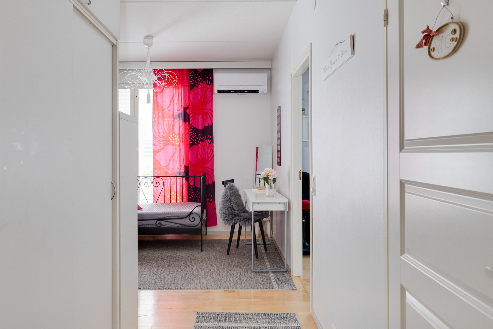 Kulku terassille Seinät: tapetti Lattia: parketti |