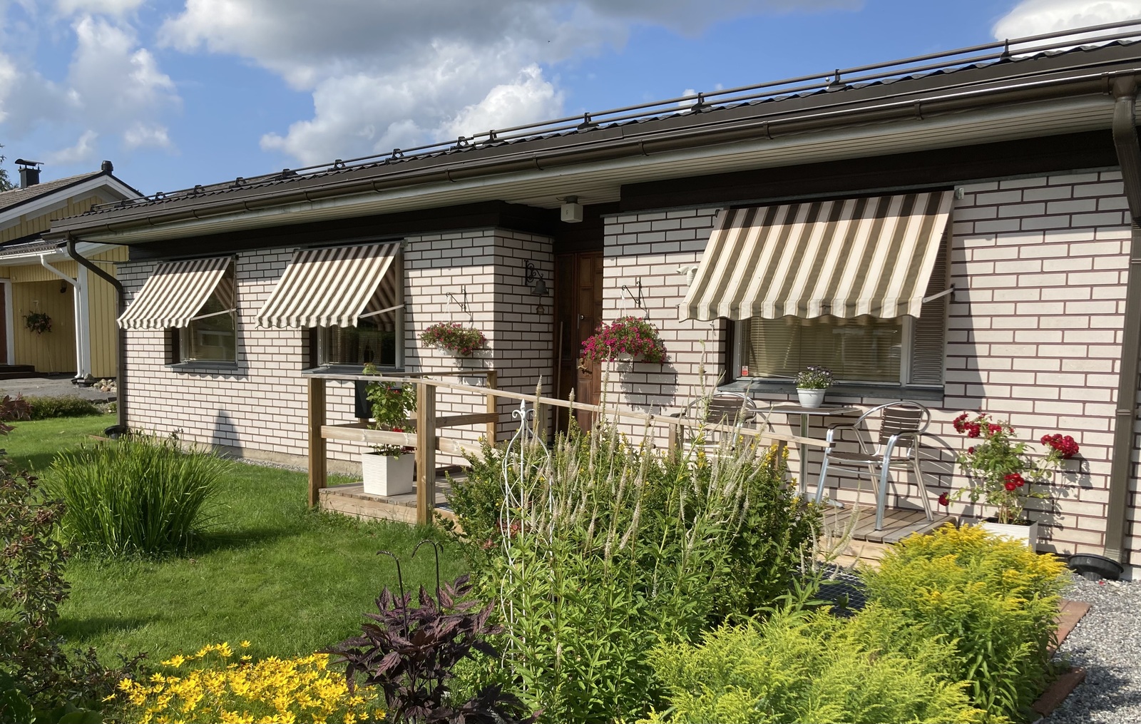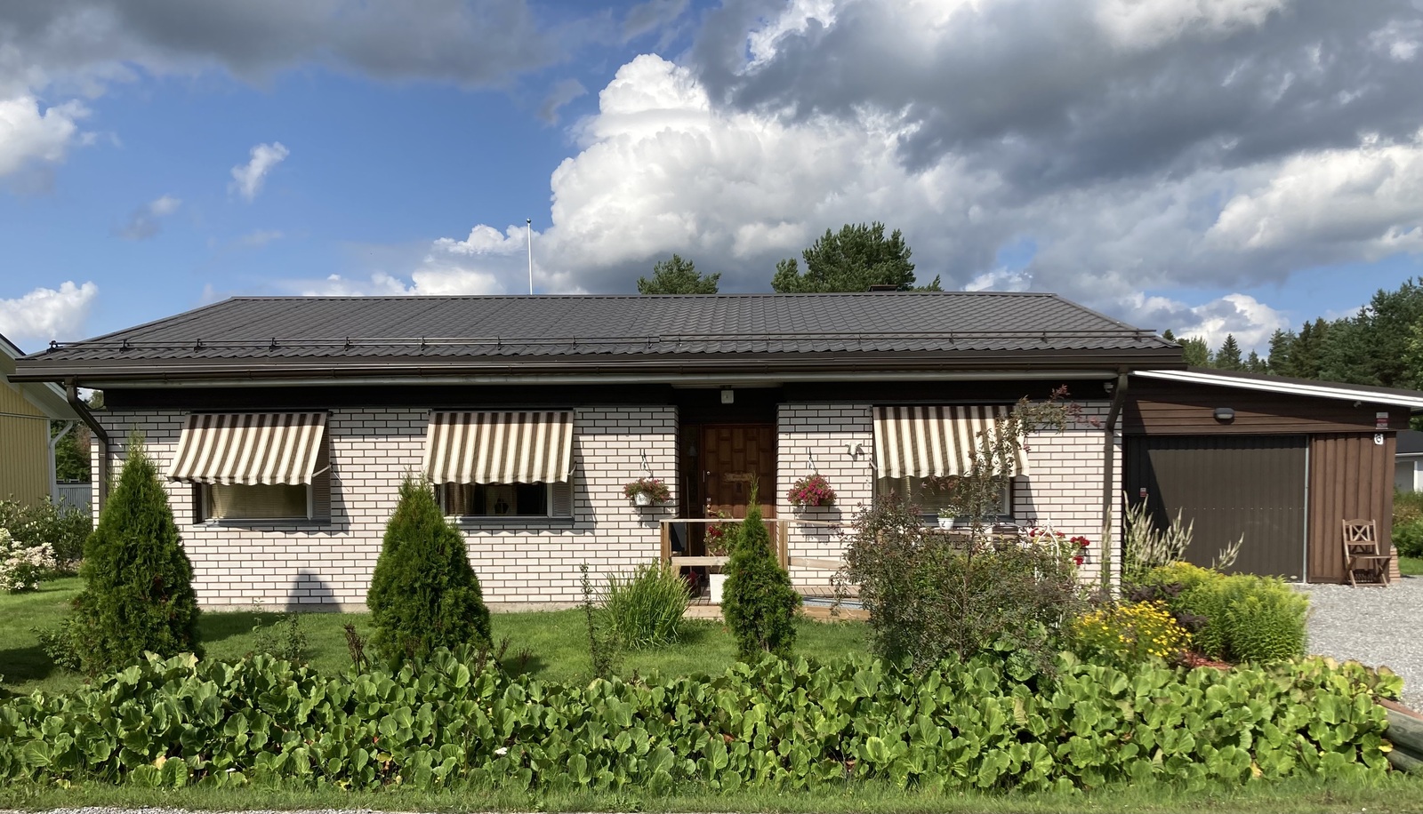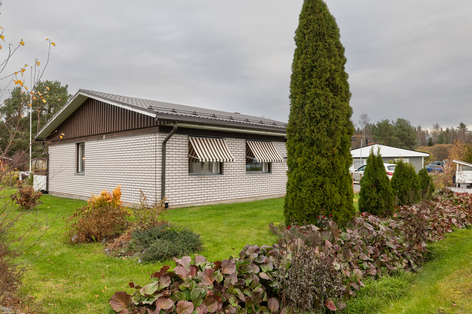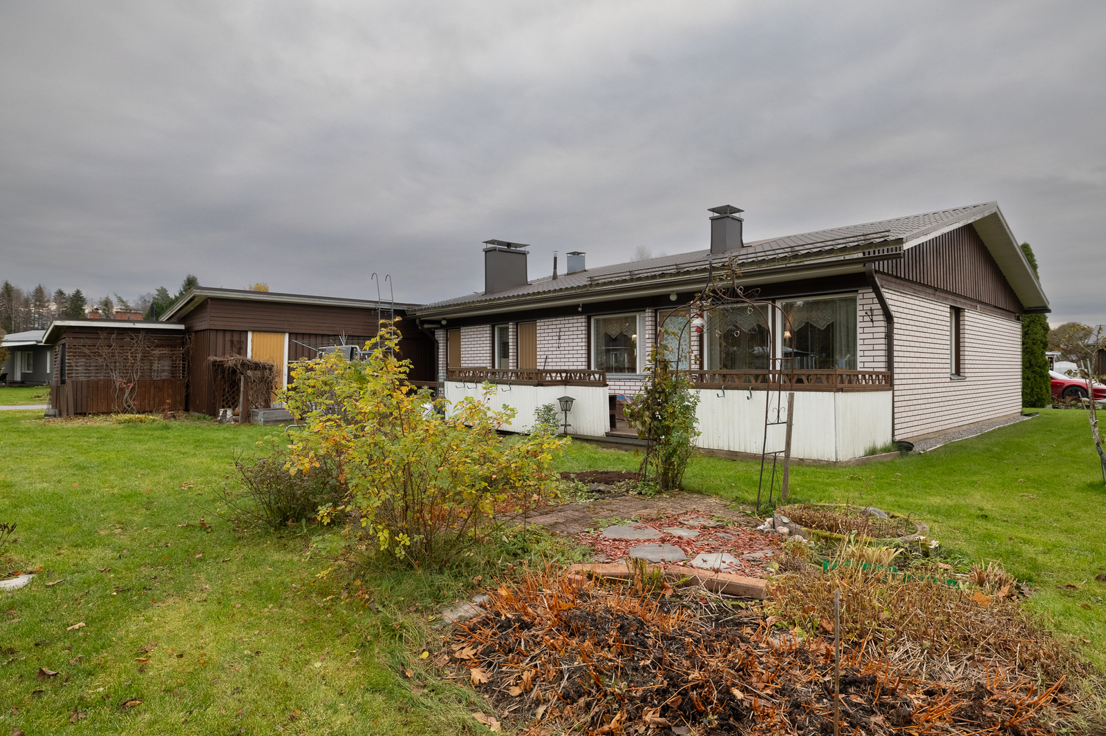 Kodikas ja lämminhenkinen omakotitalo, josta on pidetty hyvää huolta vuosien varrella. Alkuperäinen omistaja on asunut talossa alusta lähtien, mutta nyt on tullut aika siirtyä kevyempään asumiseen – sinun mahdollisuutesi tarttua tilaisuuteen! Tässä yhdessä tasossa olevassa kodissa on toimiva pohjaratkaisu: 4h + k + s + khh, yhteensä 119,5 m². Säilytystilat ovat kunnossa – entinen autotalli toimii nyt varastona ja öljysäiliöhuoneena, ja sen eteen on rakennettu kylmä autotalli. Kolme tilavaa makuuhuonetta tarjoavat riittävästi tilaa perheelle tai etätyöpisteelle. Olohuoneessa tunnelmaa luo kaunis takka. Keittiö sijaitsee olohuoneen vieressä ja tarjoaa runsaasti kaappitilaa sekä erillisen ruokakomeron. Terassille pääsee kätevästi sekä olohuoneesta että kodinhoitohuoneesta. Talossa on myös kaksi wc:tä – toinen kylpyhuoneessa ja toinen päämakuuhuoneen yhteydessä. Talo sijaitsee omalla, 1 014 m²:n tontilla, jota kehystää kaunis ja huolella hoidettu puutarha. Ensi keväänä ja kesänä on ilo seurata, mitä kaikkea puutarha tarjoaa – kukintaa, vehreyttä ja viihtyisyyttä. ************************************* Ett hemtrevligt och varmt egnahemshus som tagits väl om hand genom åren. Den ursprungliga ägaren har trivts här sedan starten – men nu är det dags att lämna plats för någon ny att skapa sitt hem. Detta enplanshus har en välplanerad layout: 4 rum + kök + bastu + grovkök, totalt 119,5 m². Det finns gott om förvaringsutrymme – det tidigare garaget används idag som förråd och oljetankrum, och framför det har man byggt ett kallgarage. Huset rymmer tre rymliga sovrum, perfekt för familjen eller för att skapa ett hemmakontor. I vardagsrummet sprider en vacker öppen spis en trivsam stämning. Köket ligger intill vardagsrummet och erbjuder gott om skåputrymme samt ett separat skafferi. Till terrassen kommer du både från vardagsrummet och från grovköket. Det finns två toaletter – en i badrummet och en smidigt placerad intill det största sovrummet. Den egna tomten är 1 014 m² stor. Den vårdade, grönskande trädgården som omger huset bjuder på blomsterprakt och lugn – det blir spännande att se vad våren och sommaren kommer att avslöja i denna vackra trädgård.
