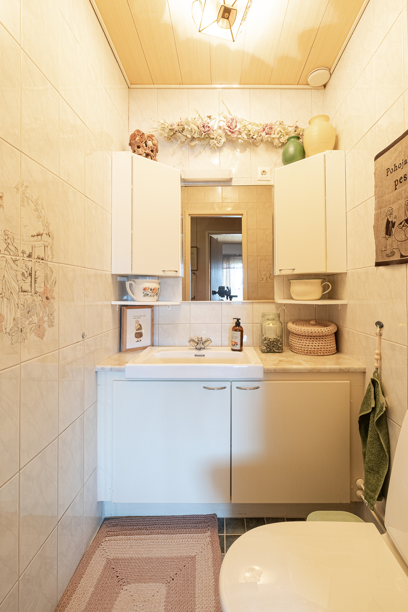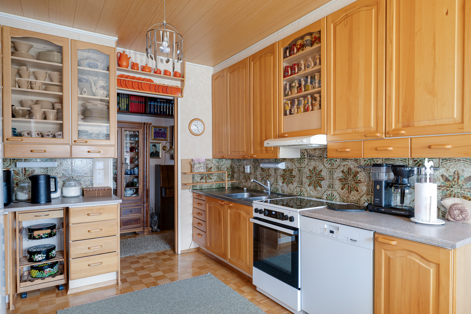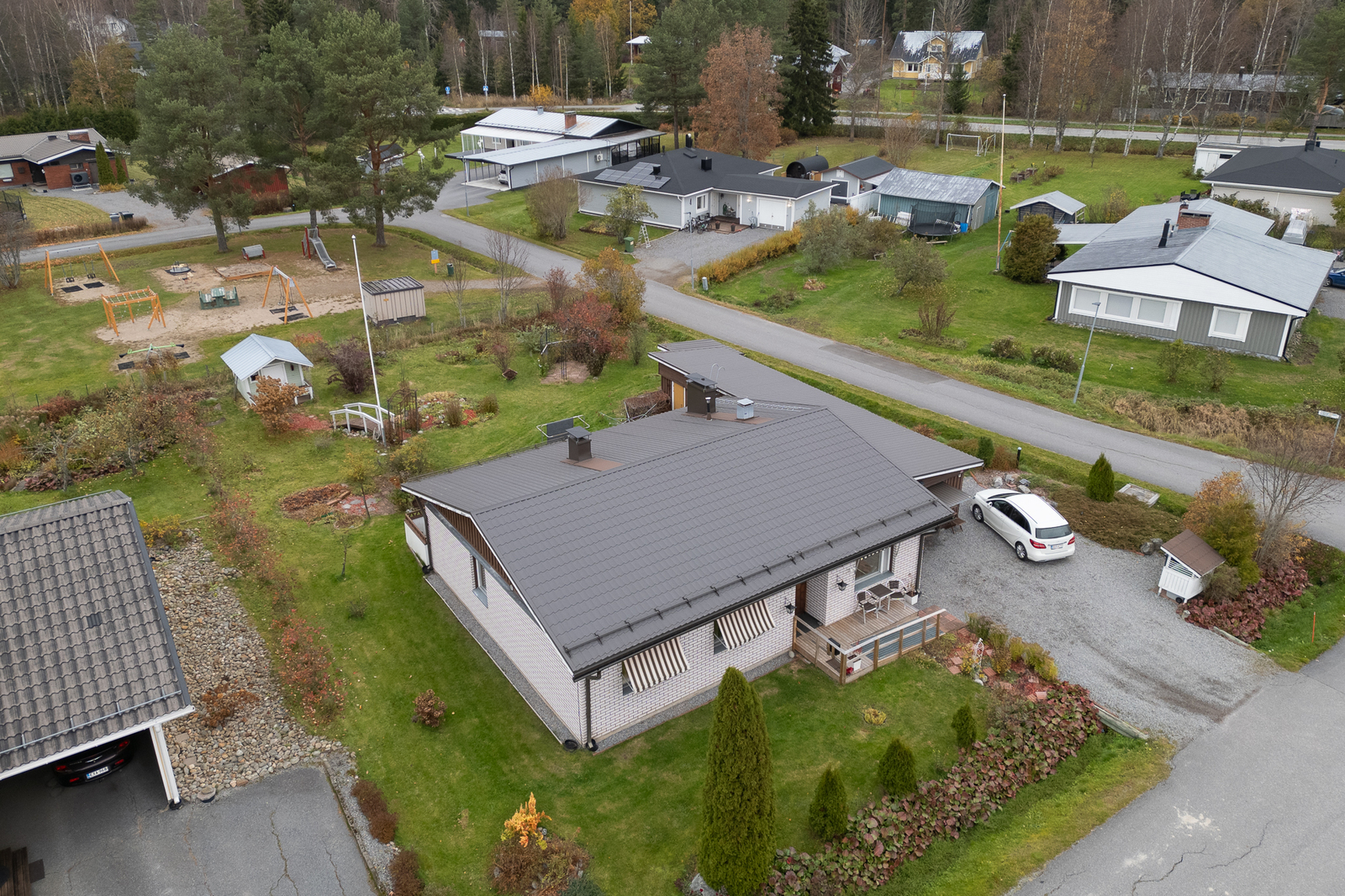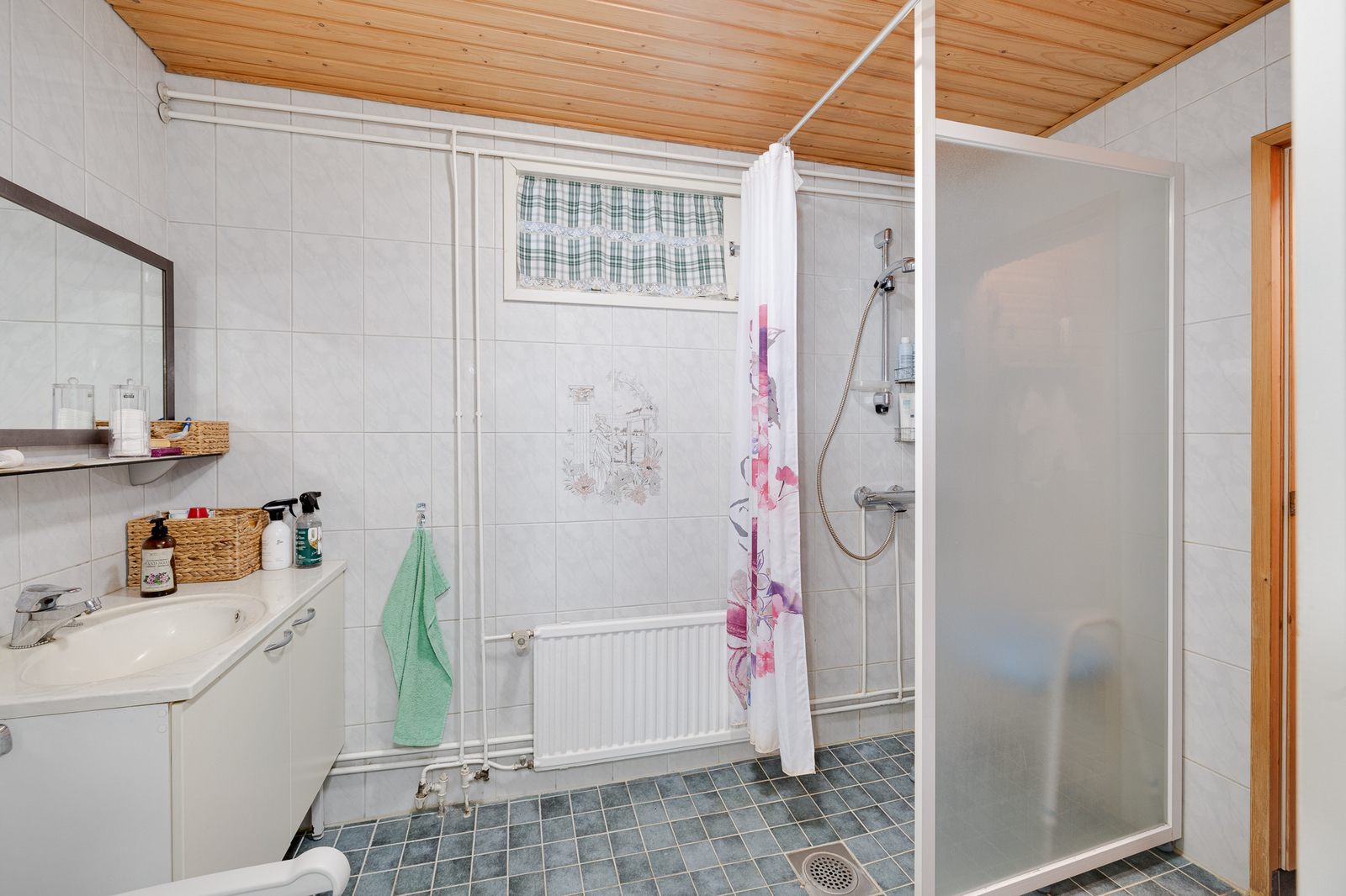 Kodikas ja lämminhenkinen omakotitalo, josta on pidetty hyvää huolta vuosien varrella. Alkuperäinen omistaja on asunut talossa alusta lähtien, mutta nyt on tullut aika siirtyä kevyempään asumiseen – sinun mahdollisuutesi tarttua tilaisuuteen! Tässä yhdessä tasossa olevassa kodissa on toimiva pohjaratkaisu: 4h + k + s + khh, yhteensä 119,5 m². Säilytystilat ovat kunnossa – entinen autotalli toimii nyt varastona ja öljysäiliöhuoneena, ja sen eteen on rakennettu kylmä autotalli. Kolme tilavaa makuuhuonetta tarjoavat riittävästi tilaa perheelle tai etätyöpisteelle. Olohuoneessa tunnelmaa luo kaunis takka. Keittiö sijaitsee olohuoneen vieressä ja tarjoaa runsaasti kaappitilaa sekä erillisen ruokakomeron. Terassille pääsee kätevästi sekä olohuoneesta että kodinhoitohuoneesta. Talossa on myös kaksi wc:tä – toinen kylpyhuoneessa ja toinen päämakuuhuoneen yhteydessä. Talo sijaitsee omalla, 1 014 m²:n tontilla, jota kehystää kaunis ja huolella hoidettu puutarha. Ensi keväänä ja kesänä on ilo seurata, mitä kaikkea puutarha tarjoaa – kukintaa, vehreyttä ja viihtyisyyttä. ************************************* Ett hemtrevligt och varmt egnahemshus som tagits väl om hand genom åren. Den ursprungliga ägaren har trivts här sedan starten – men nu är det dags att lämna plats för någon ny att skapa sitt hem. Detta enplanshus har en välplanerad layout: 4 rum + kök + bastu + grovkök, totalt 119,5 m². Det finns gott om förvaringsutrymme – det tidigare garaget används idag som förråd och oljetankrum, och framför det har man byggt ett kallgarage. Huset rymmer tre rymliga sovrum, perfekt för familjen eller för att skapa ett hemmakontor. I vardagsrummet sprider en vacker öppen spis en trivsam stämning. Köket ligger intill vardagsrummet och erbjuder gott om skåputrymme samt ett separat skafferi. Till terrassen kommer du både från vardagsrummet och från grovköket. Det finns två toaletter – en i badrummet och en smidigt placerad intill det största sovrummet. Den egna tomten är 1 014 m² stor. Den vårdade, grönskande trädgården som omger huset bjuder på blomsterprakt och lugn – det blir spännande att se vad våren och sommaren kommer att avslöja i denna vackra trädgård.