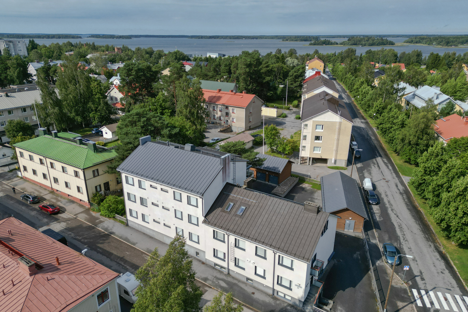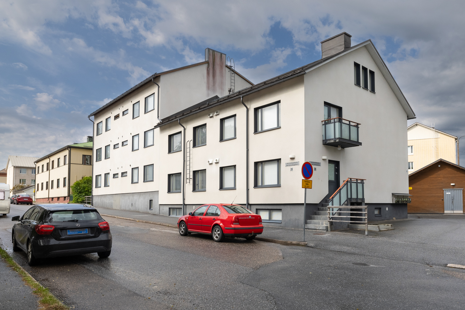 Tilava yksiö mukavalla paikalla Palosaarella Tämä kaksikerroksinen osa taloyhtiöstä, missä kyseinen asunto sijaitsee on peruskorjattu täysin vuonna 2009. Samana vuonna valmistui kolmikerroksinen uudisosa. Tämä lähes velaton taloyhtiö on omalla tontilla ja lämmitysmuotona kaukolämpö. Asunto sijaitsee kätevästi talon ensimmäisessä kerroksessa ja ikkunat ovat rauhalliselle Pikitehtaankadulle päin. Tässä olisi valmis, hyvä sijoituskohde valmiiksi vuokrattuna. Vuokra on 550 € sisältäen yhden vesimaksun. Tämän taon kellarikerroksessa on saunaosasto, pesutupa, kuivaushuone sekä varastotilat. ************************************* Rymlig etta med trevligt läge i centrum av Brändö Denna tvåvåningsdel av bostadsbolaget, där lägenheten är belägen, genomgick en totalrenovering år 2009. Samma år färdigställdes också en ny trevåningsdel. Detta nästan skuldfria bostadsbolag ligger på egen tomt och uppvärmningen sker via fjärrvärme. Lägenheten är smidigt belägen på husets första våning och fönstren vetter mot den lugna Beckbruksgatan. Här har du ett färdigt, bra investeringsobjekt – redan uthyrt. Hyran är 550 € och inkluderar en vattenavgift. I husets källarvåning finns bastuavdelning, tvättstuga, torkrum samt förrådsutrymmen.