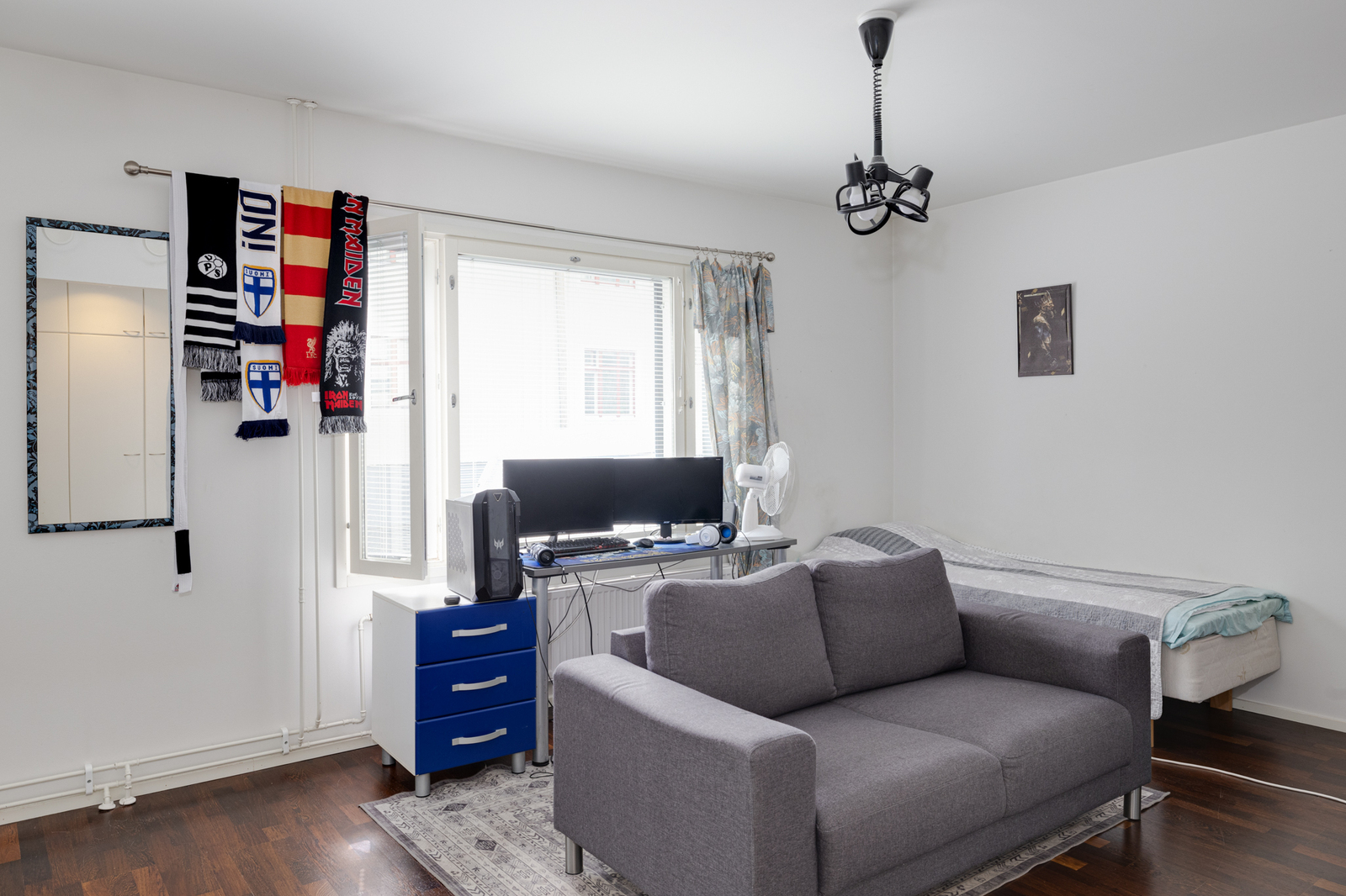 | Olohuone: | Seinät: maalattu Lattia: laminaatti |