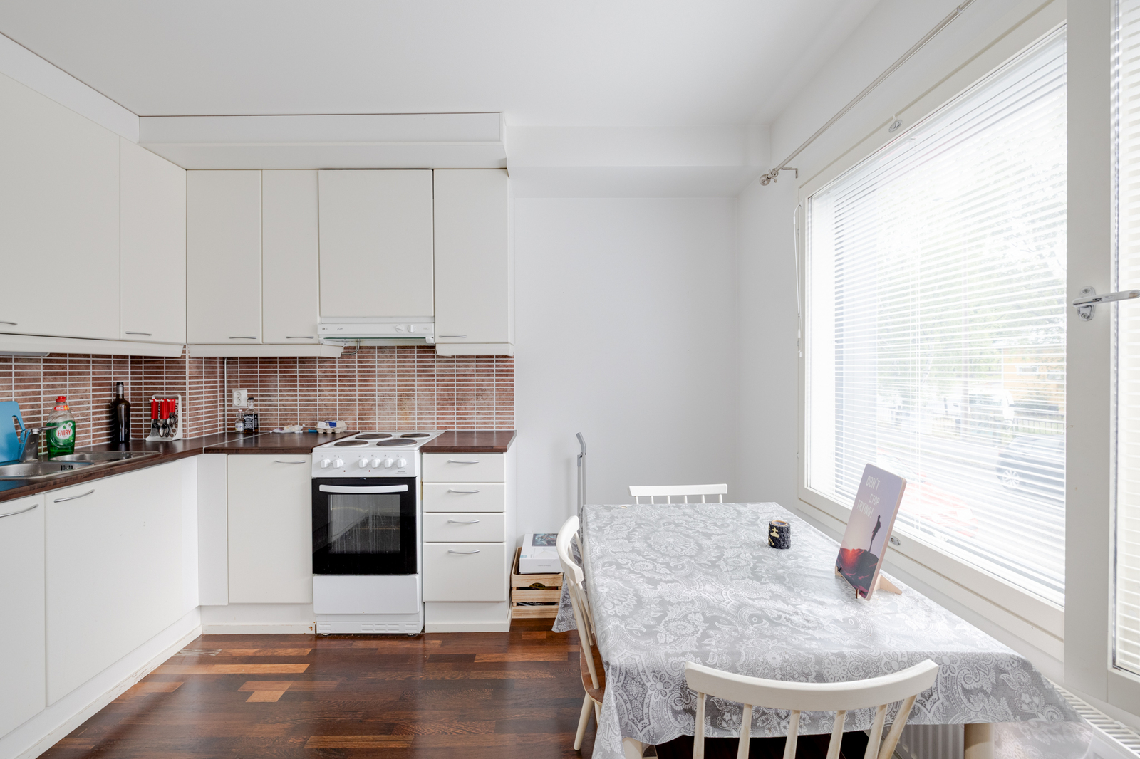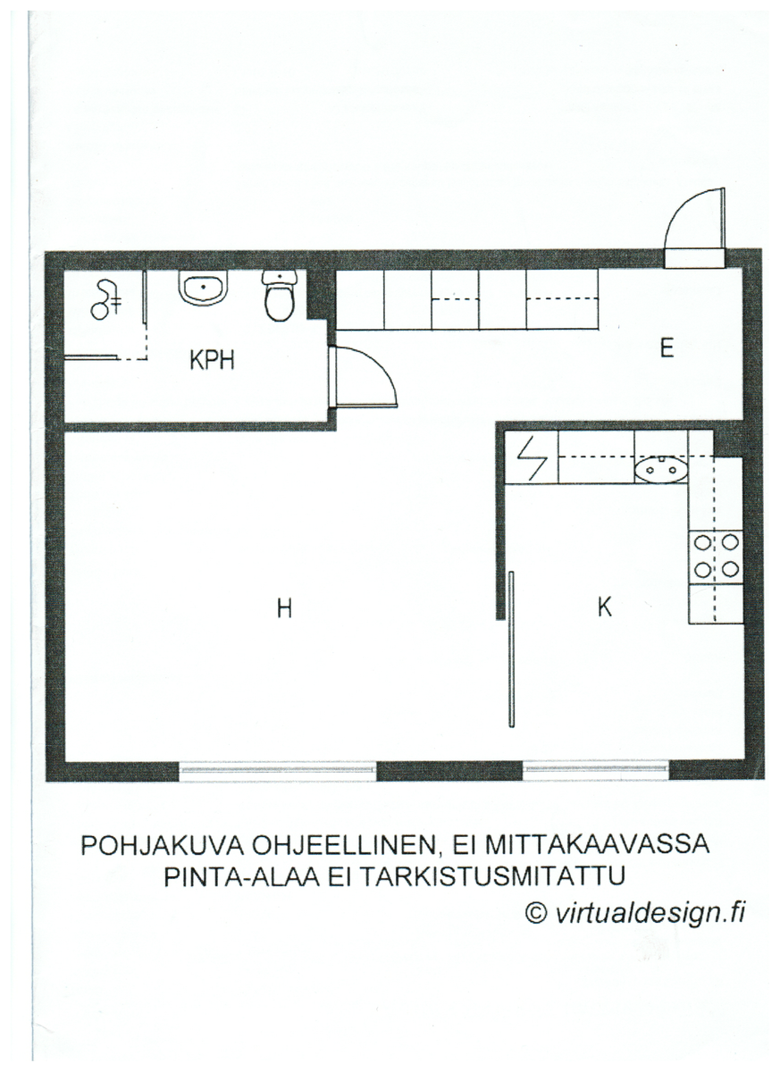 | Keittiö: | Varustus: jääkaappi/pakastin, varattu paikka astianpesukoneelle. Liesi: sähköliesi. Lattia: laminaatti. Seinät: maalattu |
