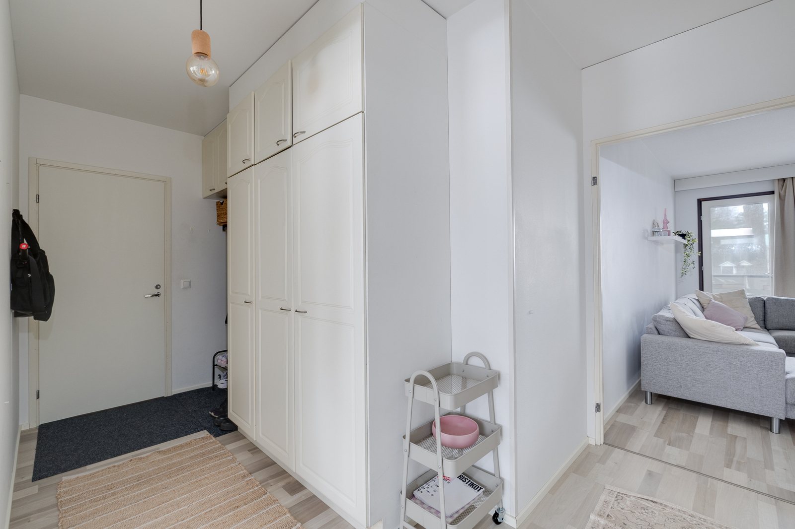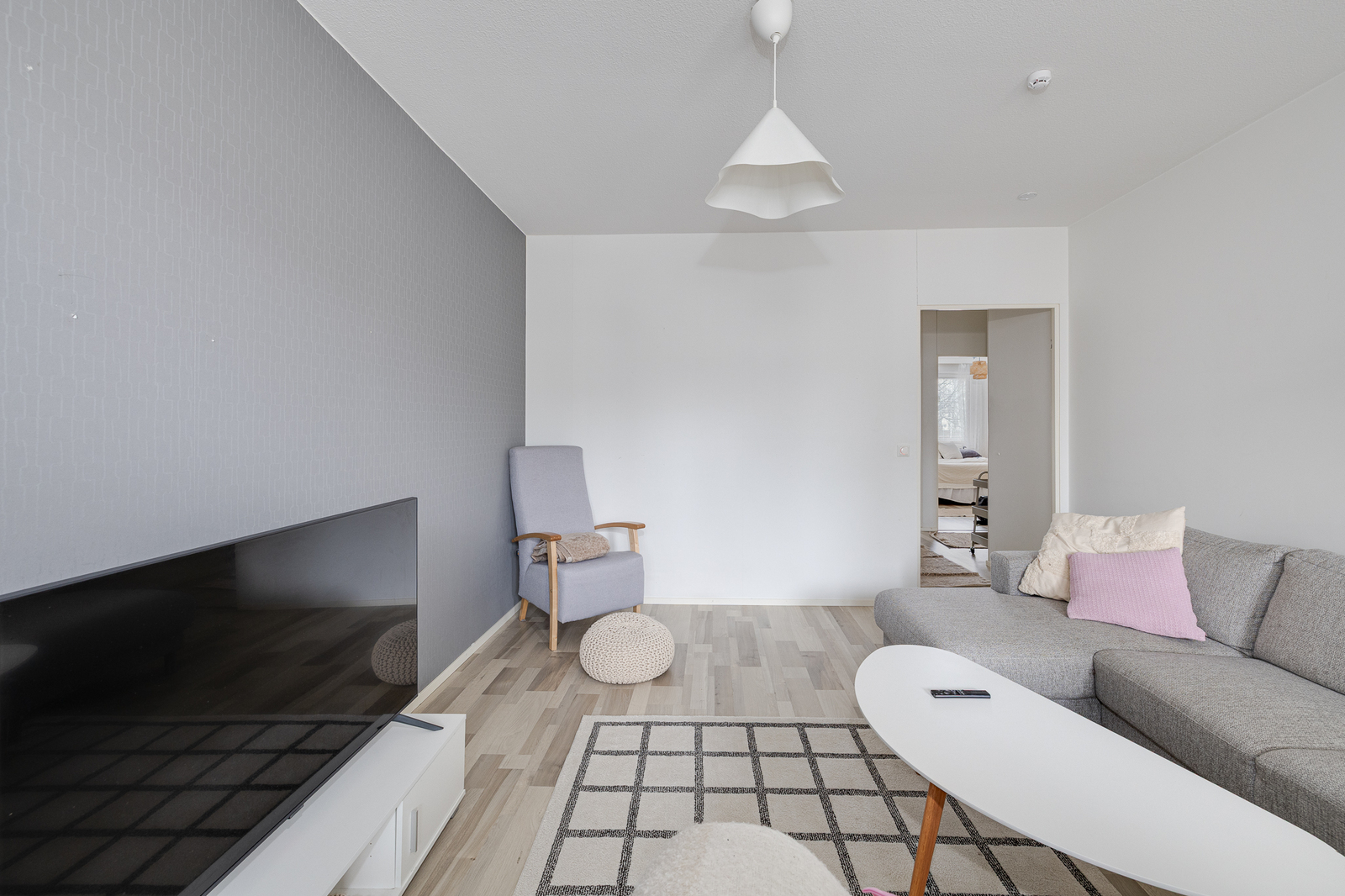 Olohuone: Kulku parvekkeelle Seinät: maalattu Lattia: laminaatti