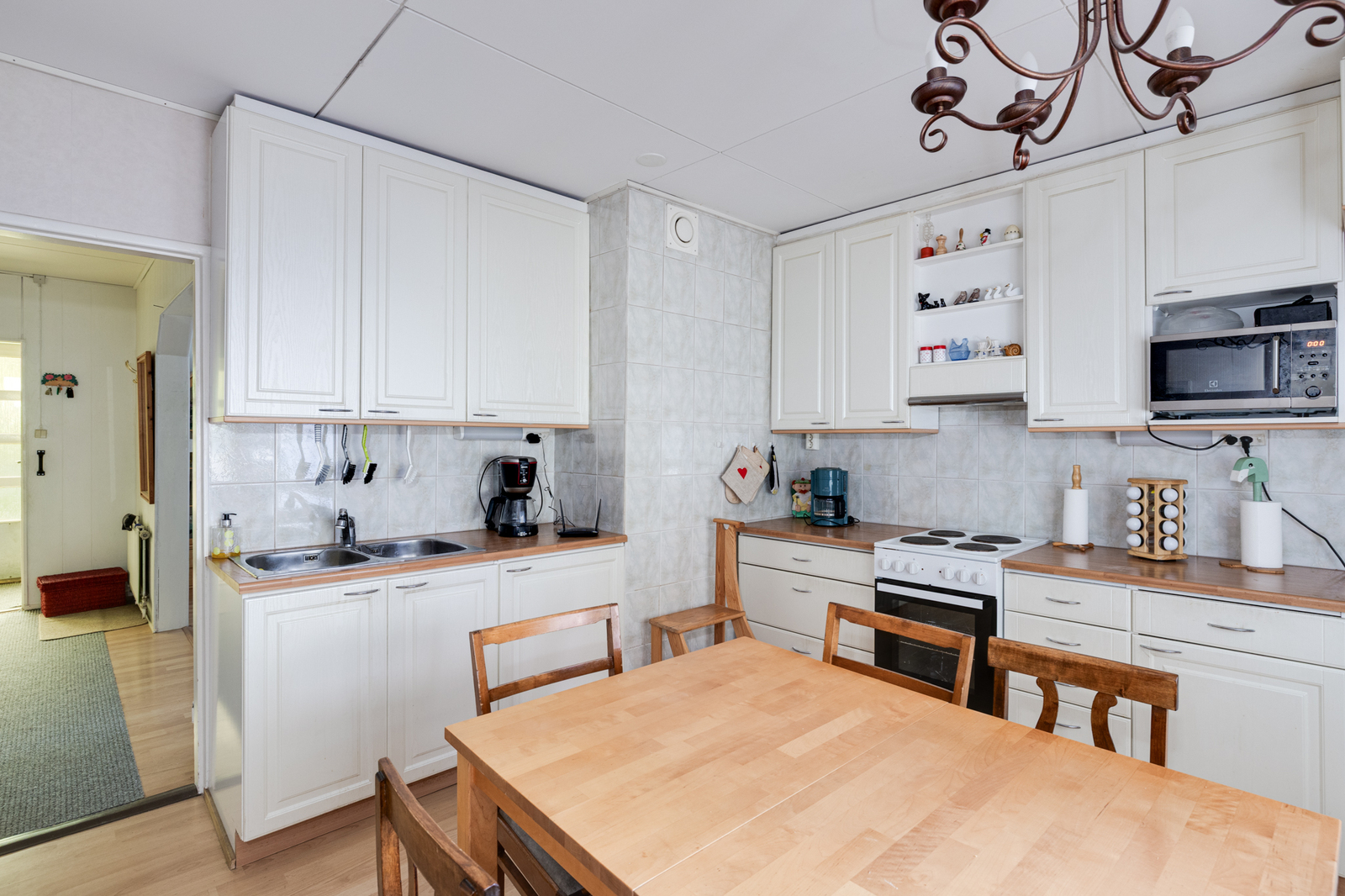 Mahdollisuuksien kiinteistö Vanhan Vaasan historiallisessa miljöössä Tämä mielenkiintoinen ja monipuolinen omakotitalo sijaitsee arvostetulla Vanhan Vaasan alueella. Talossa on kaksi erillistä asuntoa ja runsaasti kellaritilaa – täydellinen vaihtoehto niin kahden sukupolven kodiksi kuin yrittäjälle tai vuokraustoimintaan. Talo on rakennettu kahdessa vaiheessa: alkuperäinen osa valmistui vuonna 1957 ja laajennus tehtiin 1966. Molempien osien alla on täyskellari, mikä tuo valtavasti mahdollisuuksia esimerkiksi harrastetilaksi, työtilaksi tai säilytykseen. Myös autotalli löytyy kätevästi kellarista. Lämmityksenä on vesikiertoinen sähkölämmitys, joka on helppo päivittää energiatehokkaampaan muotoon. Lisäksi vanhemman puolen olohuoneessa on tunnelmallinen varaava takka. Asunnot on helppo yhdistää yhdeksi tilavaksi perhekodiksi, mutta tilaratkaisu antaa vapauden myös muihin käyttötarkoituksiin. Ja jos etsit tonttia uudisrakentamiseen – tämä kohde on myös siihen houkuttelevasti hinnoiteltu. Vanha Vaasa on haluttu alue kauniiden ulkoilumaastojen, hyvien kulkuyhteyksien ja läheisen Runsorin työpaikka-alueen ansiosta. Tartu tilaisuuteen! *********************************** Möjligheternas fastighet i historiska Gamla Vasa Denna intressanta och mångsidiga egnahemsfastighet ligger i det eftertraktade området Gamla Vasa. Huset inrymmer två separata bostäder och generösa källarutrymmen – perfekt för två generationer, företagare eller dig som söker en investering. Fastigheten är uppförd i två etapper: den ursprungliga delen färdigställdes 1957 och tillbyggnaden kom till 1966. Båda delarna har full källare med gott om plats för hobbyverksamhet, förråd, arbetsutrymmen – eller varför inte ett gym? Garage finns praktiskt i källarplanet. Uppvärmningen sker via vattenburet system med el, vilket ger goda möjligheter att uppgradera till ett mer energieffektivt alternativ. Dessutom finns en mysig, värmelagrande eldstad i vardagsrummet i den äldre delen. Bostäderna kan enkelt slås samman till ett stort familjehem, men planlösningen möjliggör också andra användningsområden. Och om du söker en tomt för nybygge – detta objekt är också prissatt med det i åtanke. Gamla Vasa är ett populärt område tack vare vacker natur, goda kommunikationer och närheten till arbetsplatserna i Runsor. Missa inte denna chans!