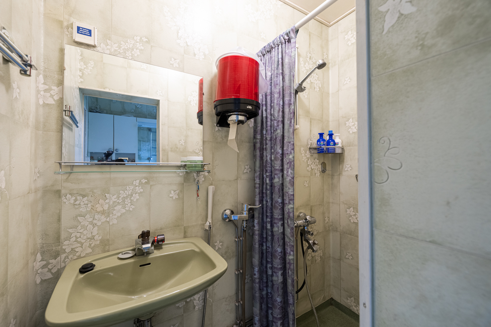 | Pesutilat: | Uudemman puolen kh:ssa wc ja suihku Varustus: lattialämmitys, wc-istuin, suihku, kylpyhuonekaapisto, asennettuja erikoisvarusteita Seinät: muovi Lattia: muovi |