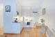 Keittiö: Varustus: jääkaappi/pakastin, liesituuletin, astianpesukone. Työtasot: laminaatti. Liesi: induktio. Lattia: kivi. Seinät: maalattu